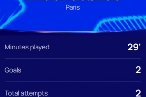 本場比賽巴黎前鋒克瓦拉茨赫利亞替補登場29分鐘梅開二度,并送出助攻,賽后當選歐冠官方評選出的本場最佳球員。