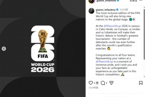 體育資訊3月12日訊 國際足聯主席因凡蒂諾社媒發文,對即將首次亮相世界杯的國家隊表示祝賀。