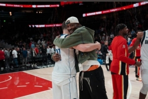 賽后,庫明加曬出了與克萊擁抱的照片,并寫道:“我的兄弟?!?/p>