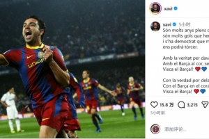 哈維寫道:“歲月如梭,征程漫漫,無數進球我們曾吶喊,證明無人能撼動我們的信念。”(巴薩隊歌部分)