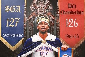 這樣,亞歷山大連續127場至少20分,正式超越1961-63賽季的張伯倫(126場),登頂NBA歷史第一。