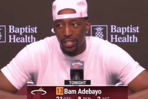 體育資訊3月13日訊 NBA常規賽,熱火主場112-105擊敗雄鹿,阿德巴約賽后接受了媒體采訪。
