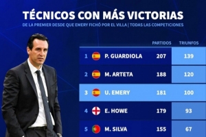 據(jù)德國(guó)轉(zhuǎn)會(huì)市場(chǎng)統(tǒng)計(jì),埃梅里執(zhí)教維拉以來(lái)帶隊(duì)贏得100場(chǎng)比賽,英超主帥同期勝場(chǎng)第三多。
