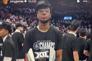 體育資訊03月04日訊 湖人球星詹姆斯轉發了自己的小兒子布萊斯奪得Big 12聯賽常規賽冠軍的捧杯圖片。