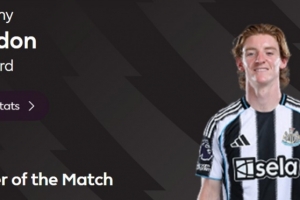 本場比賽紐卡前鋒戈登打進全場唯一進球,賽后他也當(dāng)選英超官方球迷票選全場最佳球員。