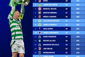 現役球員單一俱樂部出場榜:阿金費耶夫817場居首,科克727場次之