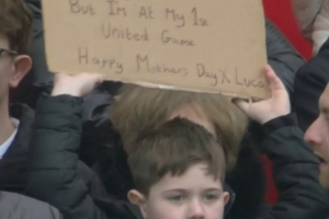 錯過母親節,小球迷舉牌向母親道歉:今天是我第一次來看曼聯比賽