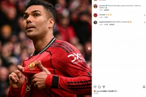 本場比賽卡塞米羅先拔頭籌,賽后他也在個人社媒曬出自己手指曼聯(lián)隊徽的慶祝動作,配文寫道:“為我們的球隊感到驕傲,為我的球迷驕傲!加油紅魔!”